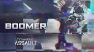 Boomer is a Pilot Burn Card playable in Titanfall: Assault. When his shield takes damage, his own damage output is increased. He is equipped with an Archer Heavy Rocket and utilises an A-Wall to amp his outgoing damage. Despite this, he uses the model of a Titanfall 2 Cloak Pilot.