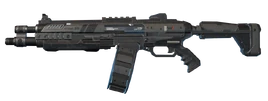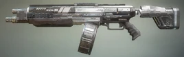 The EVA-8 Shotgun is an autoloading shotgun that deals great damage up close. It has an "8" shaped pellet spread, hence the name "EVA-8". The shells used are double O 12 gauge shells. Design-wise, it seems to be a futuristic version of the SPAS-12. As it is a shotgun, it falls off at mid-range.