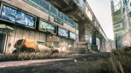 Eden is a medium sized map with choke points running through the middle sections of the town. Billboards all along the elevated rail line allow Pilots to achieve great wall running speeds and traverse the town quickly. Titans will find excellent opportunities to engage Pilots safely in the streets and open lots that ring the outskirts. Pilots however, have many options amongst the diverse spread of small outbuildings and their interiors, as well as walled courtyards, for both escape and counterattack.