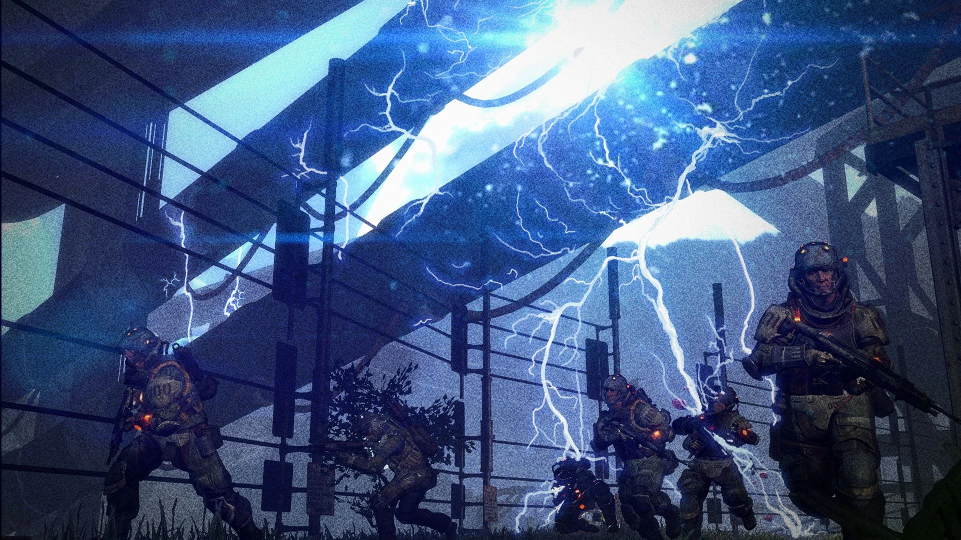 The map additionally features an arc trap at the top of the hill. When activated by shooting the red glowing wires in a building at the bottom of the map, the trap will explode and temporarily block passage through this route.