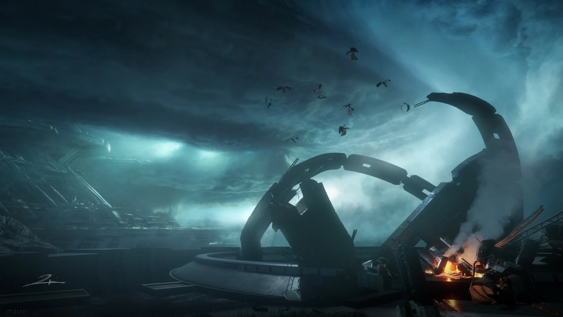 The original Fold Weapon was discovered on Typhon in a state of disrepair, by ARES Division. Well above the limits of known human technology, ARES began examining the structure in an attempt to glean information about its operation and creators. Eventually, they were able to extract enough information to confirm knowledge of how the weapon worked and how to repair it. Because of the IMC's back-foot position after the Battle of Demeter, General Marder began preparations to use the weapon as an ultimatum against the Militia. Before the weapon could be fired, it needed to be tested. To do this, ARES Division built a small-scale version of the weapon at their Complex on Typhon. The rings on this version were 184 metres in diameter. The test was brought forward after a Militia Pilot was reported to have infiltrated the base. This test would result in the destruction of Orthros alongside the destruction of the rings due to instabilities caused by Jack Cooper removing the Ark from the Weapon.
