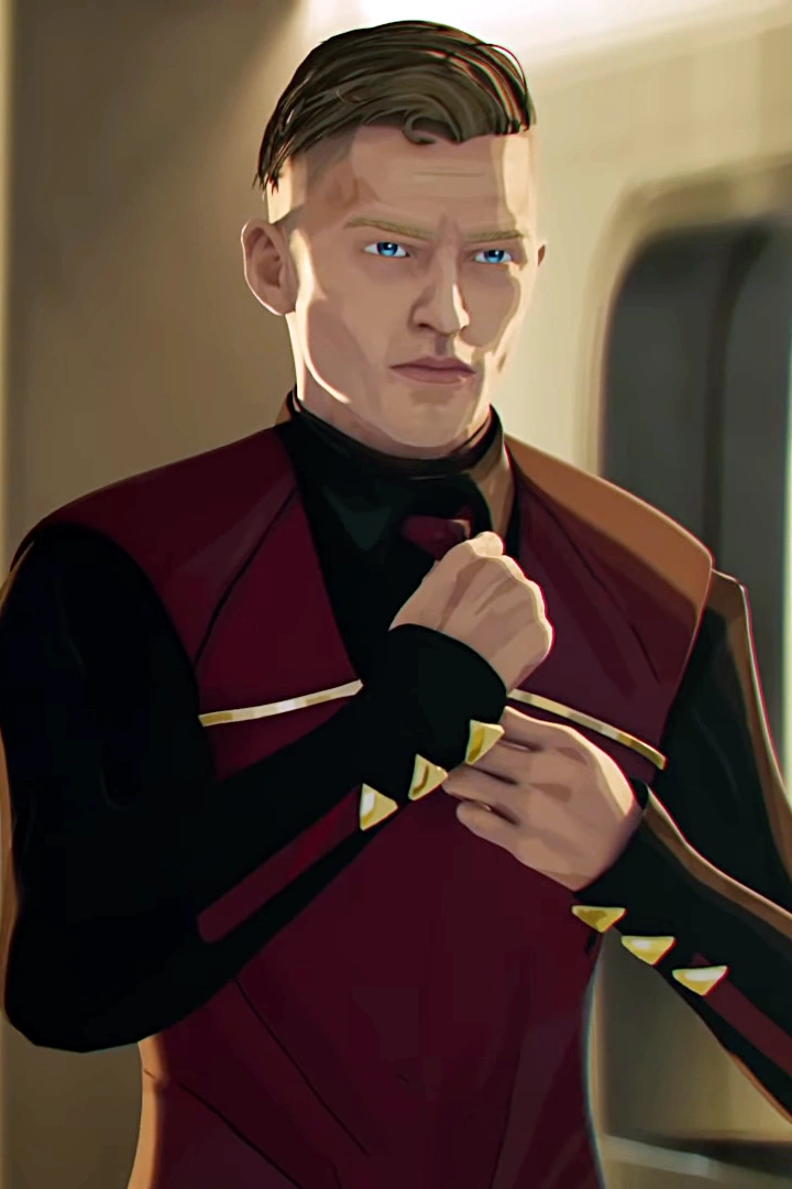 Kaleb Cross, represented as a human, is shown as a tall man with blonde hair and blue eyes. However, as a simulacrum, he stands at six feet and eight inches with yellow eyes. His black and red chassis is designed as a tribute to the suit he previously wore while serving as a hitman.