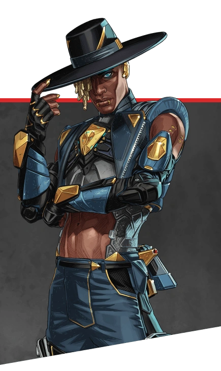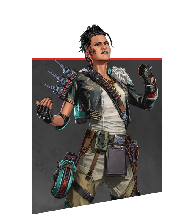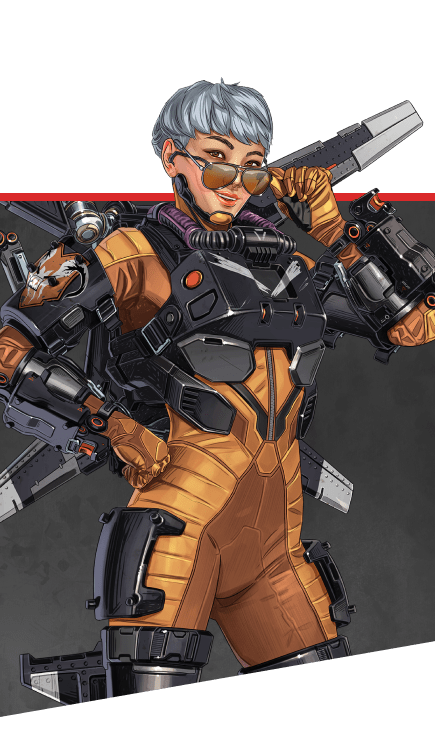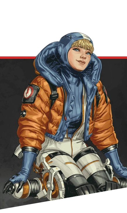 | Ash • Bangalore • Ballistic • Bloodhound •Catalyst •Caustic • Conduit • Crypto • Fade • Fuse • Gibraltar • Horizon • Loba • Lifeline • Mad Maggie • Mirage • Newcastle • Octane • Pathfinder • Rampart • Revenant • Rhapsody •Seer • Valkyrie•Vantage • Wattson • Wraith |