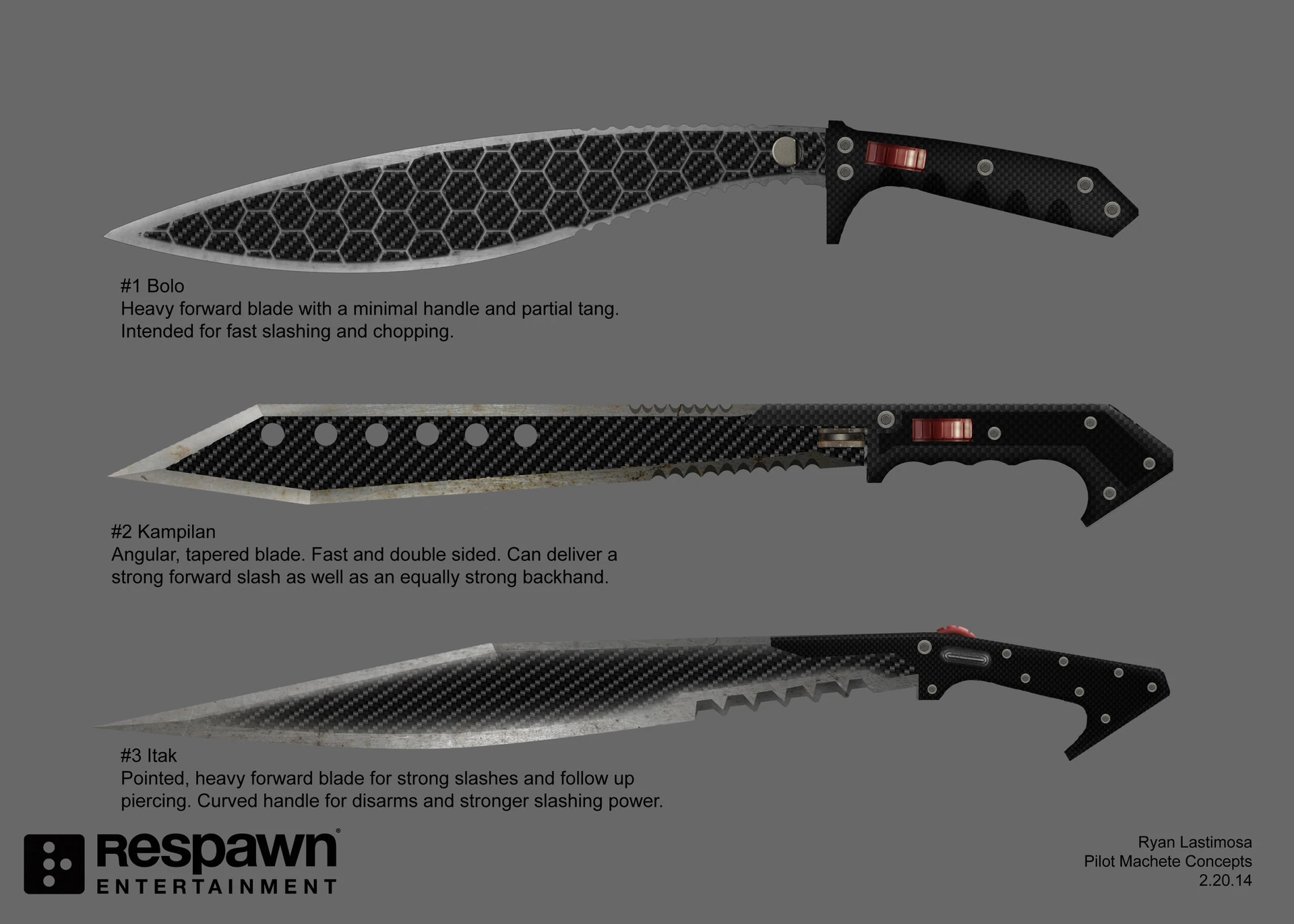 The Machete is a weapon that is referenced to be wielded by the Shinobi Pilots in Titanfall 2.