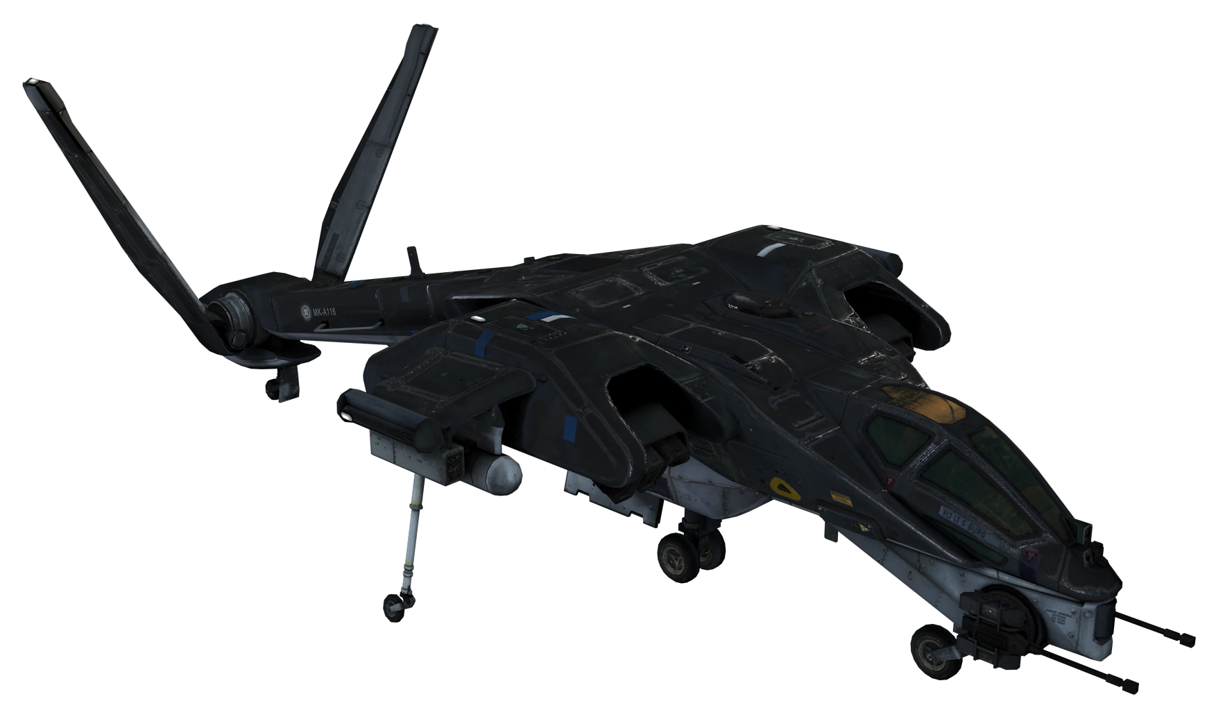 - The text visible on the tail boom of the Phantom spells out MK-A116