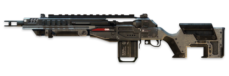 | Weapons | Primary | R-101C Carbine • Hemlok BF-R • G2A4 Rifle • EVA-8 Shotgun • R-97 Compact SMG • C.A.R. SMG • Spitfire LMG • Longbow-DMR Sniper • Kraber-AP Sniper • Smart Pistol MK5 |