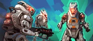 As depicted in the Season 5 Launch Trailer, underneath the Skull Town area in King's Canyon, multiple Stalkers were used as the security measures guarding Revenant's head. After a failed attempt to destroy it by Loba, the security system went off, activating the dormant Stalkers with each of them reaching for X-55 Devotions and R-301s from a weapon rack. Most of them were destroyed by Loba, though a legless Stalker nearly succeeded in dragging Loba down into the ensuing explosion sinking Skull Town into the ocean, before she teleported with the help of her Jump Bracelet.