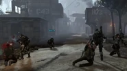 IMC forces deploy near the fields outside the town's wall, as a Phantom deploys a new rack of Spectres to assist the existing complement. As Pilots move in, they will pass a number of surviving colonists now captured by the IMC and ready for transportation to Typhon.[2] Militia forces deploy on the other end of the village, just in time to see their riflemen ambushed by the drones jumping over the buildings.