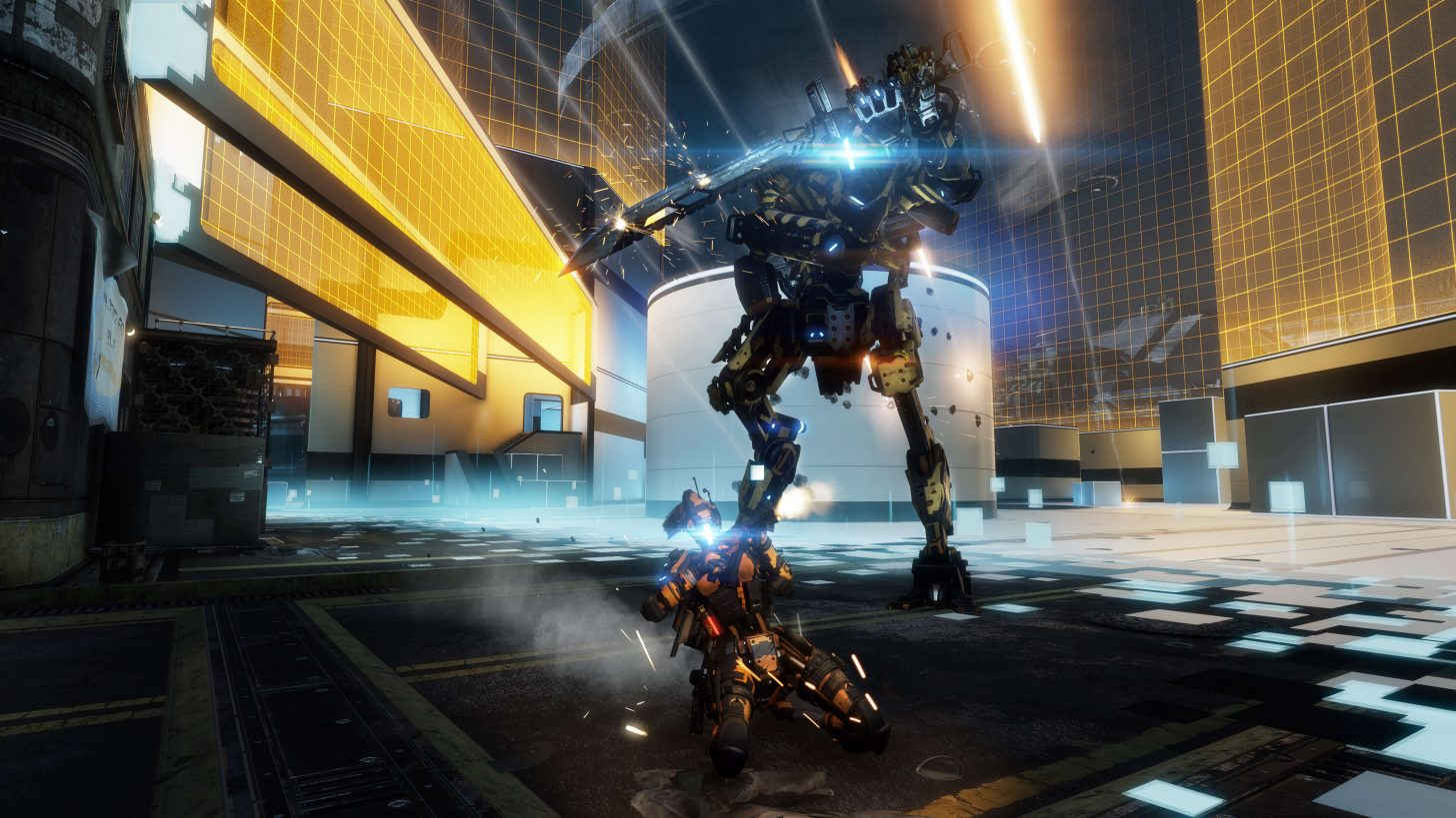 - War Games: Pilots on the Frontier frequently use simulator pods to train, using life-like recreations of historical battles as combat scenarios. War Games highlights the civilian shops, tall buildings for window-to-window fighting, and city streets for Titan combat from the Battle of Angel City, and the large, open tank garage facilities for hand-to-hand Pilot combat from the Battle of Airbase Sierra. The outskirts of the map feature a clean, VR style perfect for Titan duels, while Pilots are often found running along the bright, interconnected wallrunning routes.